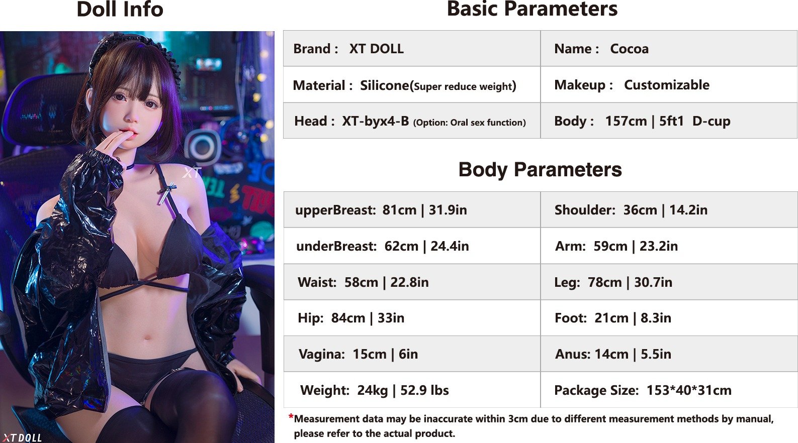 首頁 XTDOLL極限娃娃-大娃 XTDOLL極限娃娃-Cocoa-157cm-D罩杯-全矽膠🔍 XTDOLL極限娃娃-Cocoa-157cm-D罩杯-全矽膠NT$0※娃娃相關配件及功能費用,可參閱【產品目錄】。※若欲自行搭配頭雕及身形,可私訊客服人員協助。※ 商品圖片經專業燈光與後製處理,實品與圖片多少有差異,敬請理解並請完美主義者審慎選購。 頭雕 *Choose an option照官圖身形 *Choose an option照官圖膚色 *Choose an option照官圖普膚色黃褐色頭髮 *Choose an option照官圖#1#2#3#4#5#6#7#8植真人髮植高溫絲眼球樣式 *Choose an option照官圖深藍色天藍色藍色綠色翠綠色深棕色紅色乳暈顏色 *Choose an option照官圖粉色棕色深棕色乳暈大小 *Choose an option照官圖3CM4CM5CM胸部樣式 *Choose an option照官圖果凍胸實心胸空心胸貼片式手/腳指甲Choose an option照官圖紫色 酒紅色紅色肉色白邊肉色黑色貼片式指甲與嵌入式指甲請擇一填寫嵌入式手/腳指甲Choose an option照官圖#1#2#3#4#6#7#8貼片式指甲與嵌入式指甲請擇一填寫下體顏色 *Choose an option照官圖粉色棕色深棕色下體樣式 *Choose an option照官圖一體式分體式下體植毛 *Choose an option照官圖不植毛植毛風格1植毛風格2植毛風格3植毛風格4站立方式 *Choose an option照官圖無釘站立不可站立有釘站立功能選擇(可複選) *都不需要發聲功能TPE身發熱功能矽膠身皮下加熱手指骨水潤下體ROS功能矽膠身升級精緻體妝下體夾吸功能矽膠身超減重TPE減重腳趾骨TPE身加軟矽膠頭加軟零反推下體交互式反饋腿2.0版矽膠身果凍臀雙層陰道可插入式指甲升級耐穿刺手指手部加硬逼真眼皮運動全鬆骨架機械關節腳骨其他加購有需要再填寫其他備註有需要再填寫 Product total Options total Grand total XTDOLL極限娃娃-Cocoa-157cm-D罩杯-全矽膠 數量 加入購物車 分類: XTDOLL極限娃娃-大娃 標籤: 157cm, D罩杯, 全矽膠, 女娃 品牌: XTDOLL極限娃娃安全結帳保證 安全支付滿意保證全球運送退費保證 描述 評價 (0) 商品評價目前沒有評價。 搶先評價 “XTDOLL極限娃娃-Cocoa-157cm-D罩杯-全矽膠”取消回覆發佈留言必須填寫的電子郵件地址不會公開。 必填欄位標示為 *您的評分 *評分…完美很好一般不錯很差 名稱 *電子郵件 *您的評價 * 在瀏覽器中儲存顯示名稱、電子郵件地址及個人網站網址,以供下次發佈留言時使用。送出